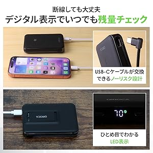 通常、ケーブル内蔵型モバイルバッテリーは、ケーブルが断線したら「ただの重い箱」になってしまうか、修理に出すしかありませんでした。 しかし、QIROCAは「着脱式(交換可能)」のUSB-Cケーブルを採用しています 。